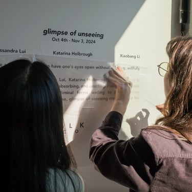 Emerging artists Cassandra Lui, Katarina Holbrough, and Xiaobang Li engage in the act of looking, absorbing, and omitting. From Lui’s intimate portraiture to Holbrough’s liminal forms leading to Li’s humorous confrontation with the mundane; glimpse of unseeing creates space for the act of noticing.